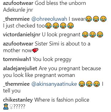 Fans went into hysteria recently when Simi posted this photo of herself online. Many of them believed she is pregnant because of the way her dress bulged out a little in front.